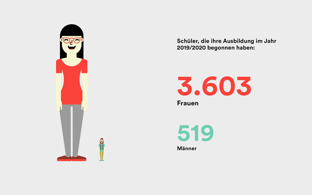 Nach einem Blick in dein eigenes Klassenzimmer wird dich folgendes wahrscheinlich nicht wundern: Die meisten Ergotherapeuten sind weiblich. Unter den 4.122 Schülern in Deutschland, die 2019/2020 ihre Ergotherapie-Ausbildung begonnen haben, waren gut sechsmal so viele Frauen wie Männer. Es ist also keine Überraschung, dass unter den Absolventen jährlich ebenfalls mehr Frauen als Männer sind.