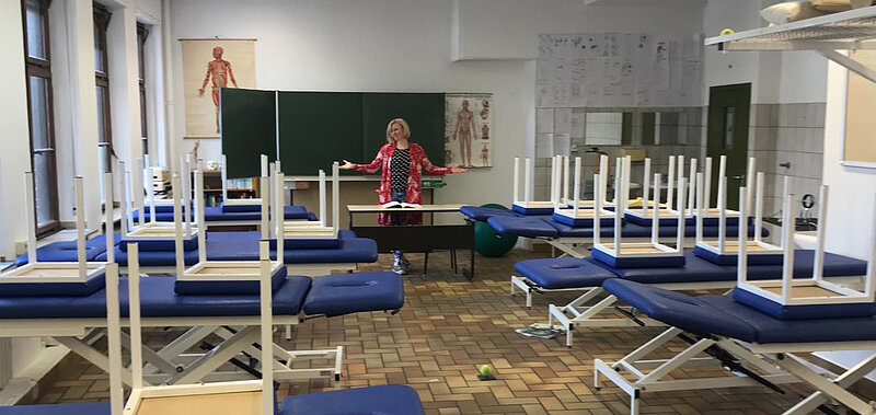 Ja, denn der reguläre Schulbetrieb läuft weiter. Ich bin jeden Tag im Wechsel mit meiner Stellvertreterin in der Schule. Hier führe ich telefonisch Bewerbungsgespräche für die Physiotherapie-Ausbildung im neuen Schuljahr, bereite das Staatsexamen vor, entwickle das Ausbildungskonzept weiter und mache kleine Methodenworkshops für mein Team, da vermehrt handlungsorientierter Unterricht im Vordergrund steht. Natürlich plane ich auch den Unterricht, der jetzt online stattfindet. Dabei ist es schon sehr zeitaufwendig, die Inhalte für die digitale Lehre didaktisch und methodisch sinnvoll aufzubereiten und umzustrukturieren.