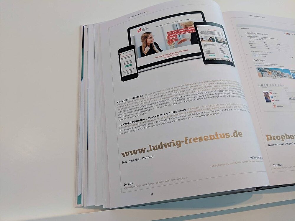 Unsere Website wurde hier als „Special Mention“ in der Kategorie „Excellent Communications Design Web“ prämiert. Begründung der Jury: „Die Website informiert junge Menschen über die Vielfalt der beruflichen Möglichkeiten. Die klar strukturierte, seriöse aber alles andere als langweilige Gestaltung weckt die Neugier und macht Lust zu stöbern.“