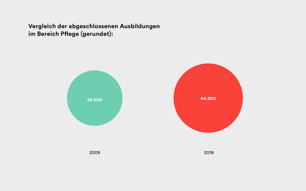 Und dennoch entscheiden sich immer mehr Menschen für eine Ausbildung im Pflegeberuf: Innerhalb von zehn Jahren haben 39 Prozent mehr eine Ausbildung im Pflegebereich begonnen.