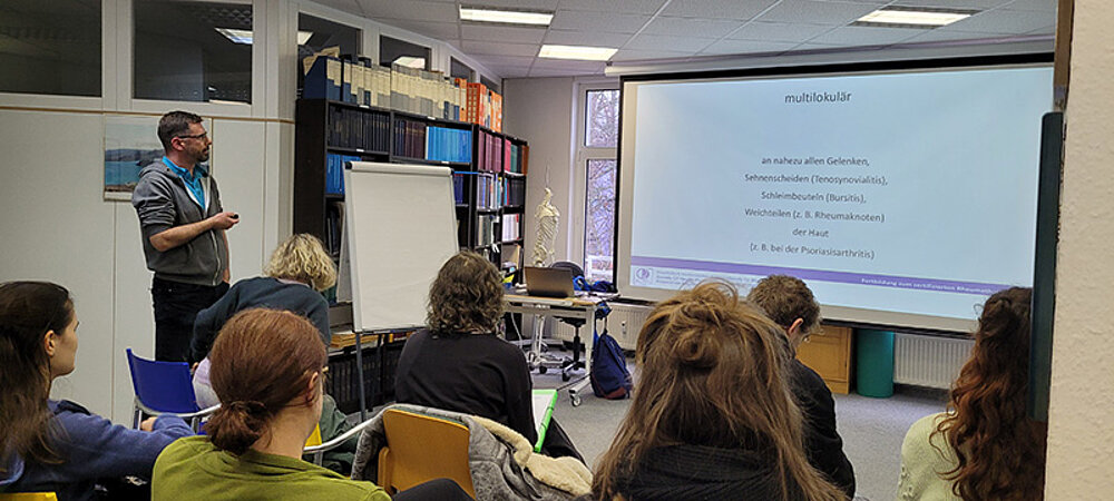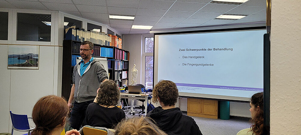 Raus aus dem Klassenzimmer ging es für die Schüler der Physiotherapie-Ausbildung an den Ludwig Fresenius Schulen Nürnberg Ende Januar: Sie besuchten das Rheuma-Therapiezentrum. Dort wurden ihnen die Bio- und Pathomechanik bei rheumatoider Arthritis anhand von Fuß- und Handdeformitäten erläutert und sie hatten die Möglichkeit, Lagerungs-, Funktions- und Übungsschienen für die Hand zu testen. Außerdem wurden innere und äußere Kompensationsmuster der Patienten sowie die Kontraindikationen bei der Therapie, Gelenkschutz und Hilfsmittelversorgung demonstriert.