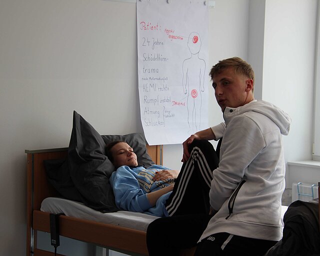 In interdisziplinären Räumen zeigten sie den knapp 100 Interessenten die Schnittstellen zwischen den einzelnen Fachbereichen und wie die Zusammenarbeit verläuft. Dazu bereiteten sie verschiedene Aktionen vor: Die Gäste konnten ihren Blutdruck und Puls messen lassen, einen Info-Parcours zur neuen Rückenschule durchlaufen und eine digitale Pflegepuppe, die hauptsächlich für den Unterricht der Pflegeschüler verwendet wird, begutachten.