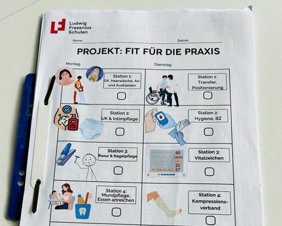 An den Ludwig Fresenius Schulen Schönebeck fand das Gemeinschaftsprojekt „Fit für die Praxis“ statt, welches die angehenden Pflegefachleute und Physiotherapeut:innen absolvierten. Die Schüler:innen des 1. Ausbildungsjahres bereiteten sich intensiv auf ihren bevorstehenden Orientierungseinsatz vor, während die des 2. Ausbildungsjahres zur Vertiefung und Vorbereitung auf die Zwischenprüfung dabei waren.
