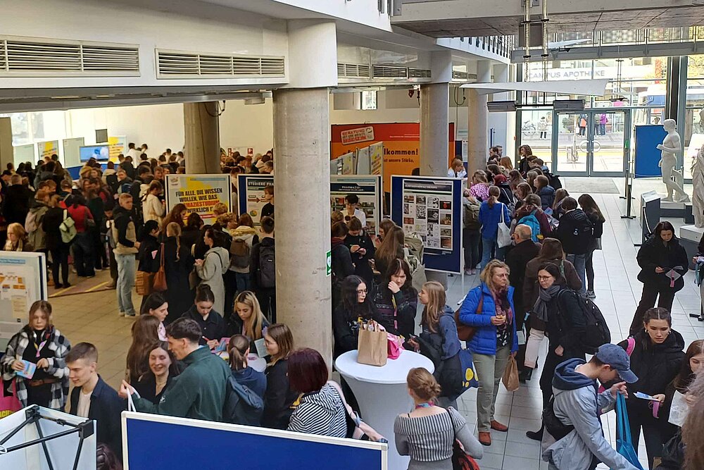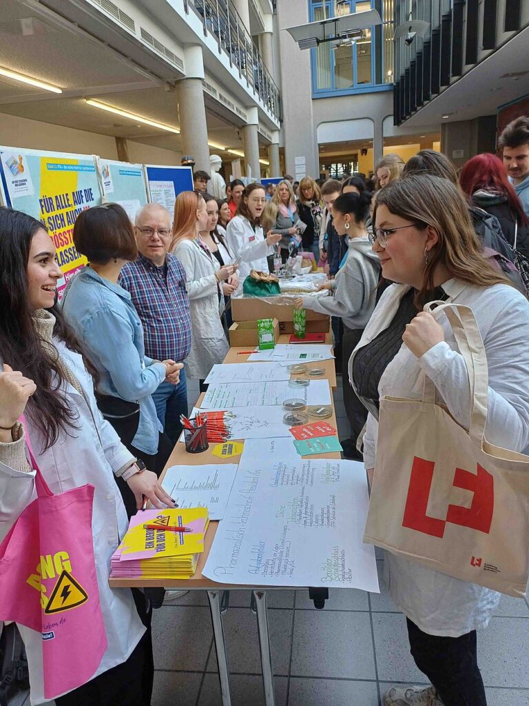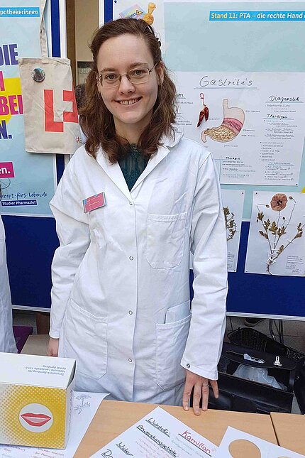 PTA-Lehrerin Martina Jentsch von den Ludwig Fresenius Schulen Erfurt freute sich über das große Interesse und den regen Austausch mit den Besuchern: „Ich kann durchgehend positiv über diesen Tag sprechen. Es waren sehr viele Jugendliche interessiert, viele wirklich auch direkt am Pharmazie-Studium. Aber ich denke, es war gut, dass wir noch eine Alternative aufzeigen konnten für diejenigen, die lieber eine Ausbildung machen und relativ schnell im Beruf stehen möchten. Viele kannten den Beruf ‚PTA‘ noch gar nicht, sodass wir sie hier darauf aufmerksam machen und die Gelegenheit bieten konnten, diesen schönen Ausbildungsberuf kennenzulernen.“