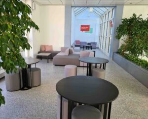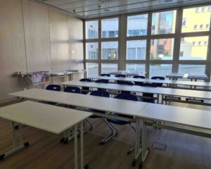 Das Schulleben hat sich seit der Eröffnung im Jahr 2023 prächtig entwickelt: Mittlerweile gibt es Schüler:innen in jedem Ausbildungsjahrgang. Neben der theoretischen Basis, die im Unterricht gelegt wird, werden sie dank verschiedener Kooperationen mit Partnern aus der Region auch im praktischen Bereich bestmöglich aufs Berufsleben vorbereitet. Dazu haben sie mit unserer modernen Schüler-Lounge einen Ort, an dem sie sich abseits der Lerninhalte entspannen und Zeit miteinander verbringen können.