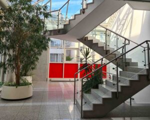 Das Schulleben hat sich seit der Eröffnung im Jahr 2023 prächtig entwickelt: Mittlerweile gibt es Schüler:innen in jedem Ausbildungsjahrgang. Neben der theoretischen Basis, die im Unterricht gelegt wird, werden sie dank verschiedener Kooperationen mit Partnern aus der Region auch im praktischen Bereich bestmöglich aufs Berufsleben vorbereitet. Dazu haben sie mit unserer modernen Schüler-Lounge einen Ort, an dem sie sich abseits der Lerninhalte entspannen und Zeit miteinander verbringen können.