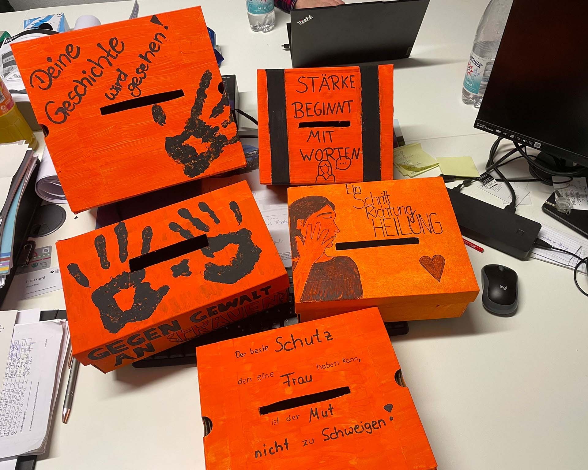 Dazu stellten die Teilnehmenden im Haus Notfallnummern für eine schnelle, direkte Kontaktmöglichkeiten für betroffene oder verunsicherte Personen dar und verteilten auf jedem Stockwerk Briefkästen. Diese sollten den Schüler:innen die Chance geben, eigene Erfahrungen mit Gewalt sicher, anonym oder vertraulich zu teilen und Unterstützung bekommen zu können.