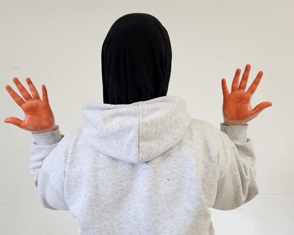 An den vielen Fenstern der Schule wurden mit Handabdrücken in orangener Farbe verziert. Diese sollen zeigen, dass an unseren Schulen Gewaltprävention ernstgenommen wird. Die Handabdrücke symbolisieren Unterstützung und Solidarität für Betroffene. Auf den Fluren bereiteten Schüler:innen und Lehrkräfte themenbezogene Plakate mit Informationsmaterial zu Themen wie Gewalt in der Partnerschaft, sexualisierter Gewalt, Zwangsheirat, Kinderheirat und digitaler Gewalt auf. Auch Informationen zu Prävention, Hilfsangeboten und dazu, wie man selbst helfen kann, wurden gut sichtbar verteilt.