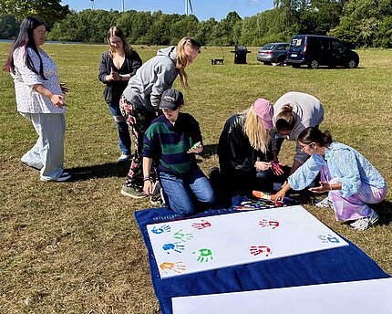 Picknickdecken, Grillstation und ein bunter Handabdruck